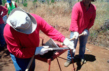 El afilador plegable para azadón se instala en terreno, cortafuego o camino, permitiendo realizar el trabajo en forma segura y mejorando notablemente la postura del trabajador que realiza la faena.