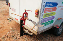 Es una prensa que se acopla mediante estructura metálica a la carrocería del carro comedor, la cual permite la sujeción de herramientas cortantes sin la necesidad de utilizar a otro trabajador, otorgándole libertad de movimiento y seguridad al realizar esta tarea.