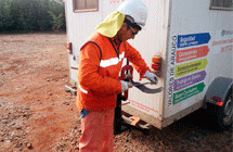 El afilador plegable para azadón se instala en terreno, cortafuego o camino, permitiendo realizar el trabajo en forma segura y mejorando notablemente la postura del trabajador que realiza la faena.