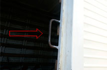 Implementar al camión con una escalera con peldaños armables y dos manillas de sujeción que permitan una subida y bajada más segura desde y hacia el interior del camión. Esta escalera cuenta con dos peldaños, los cuales permiten que el trabajador pueda subir de manera uniforme, permitiendo incluso ver los peldaños desde el interior del camión para bajar de éste.